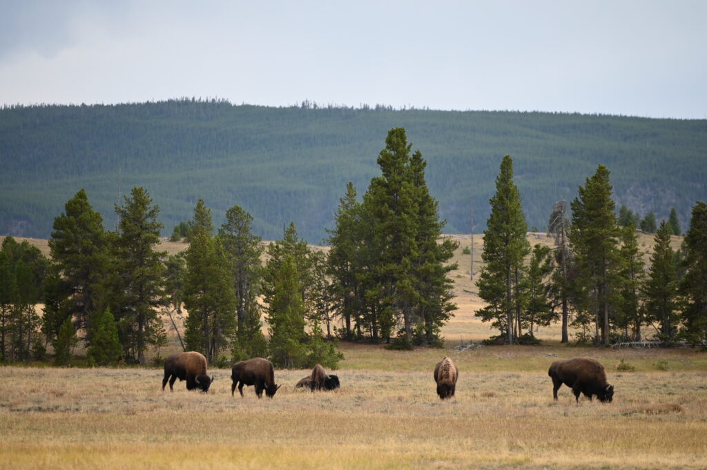 Nous continuons ensuite notre exploration vers le sud-ouest du parc. La route serpente au milieu de paysages grandioses. Tout à coup, un troupeau de bisons traverse tranquillement devant nous. Ces géants avancent avec une incroyable lenteur, imposants et majestueux.