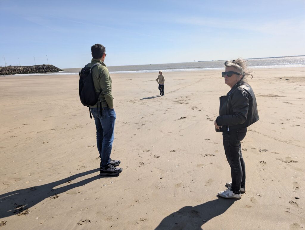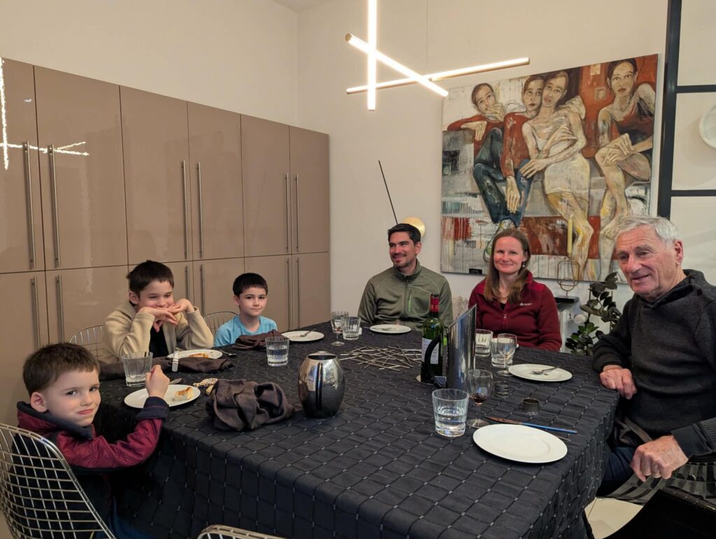 Le dernier jour, nos amis Christian et Élodie sont venus nous rendre visite avec leurs deux filles qui ont bien grandi. Ils habitaient Bordeaux la dernière fois que nous nous étions vus, avec un projet de studio à Royan. En les appelant à notre arrivée, j’ai découvert qu’ils s’y étaient finalement installés — coup de cœur pour la ville oblige. Marc leur a appris plein de choses sur Royan et l’ambiance était vraiment très sympa. Je pense qu’ils vont rester en contact !