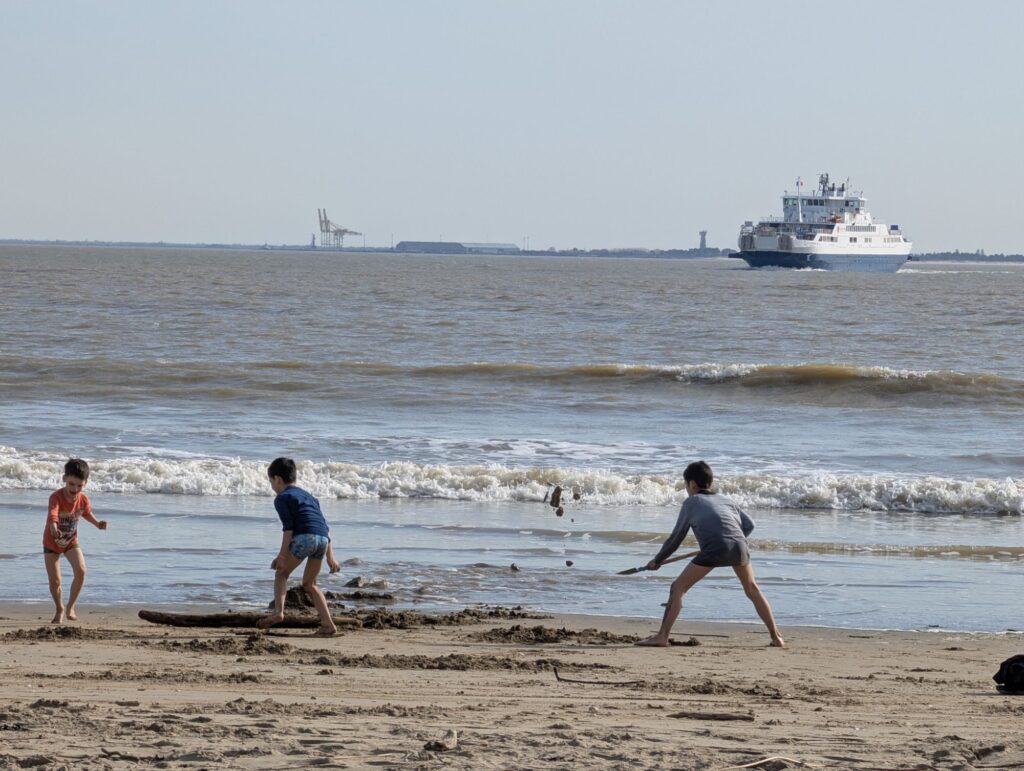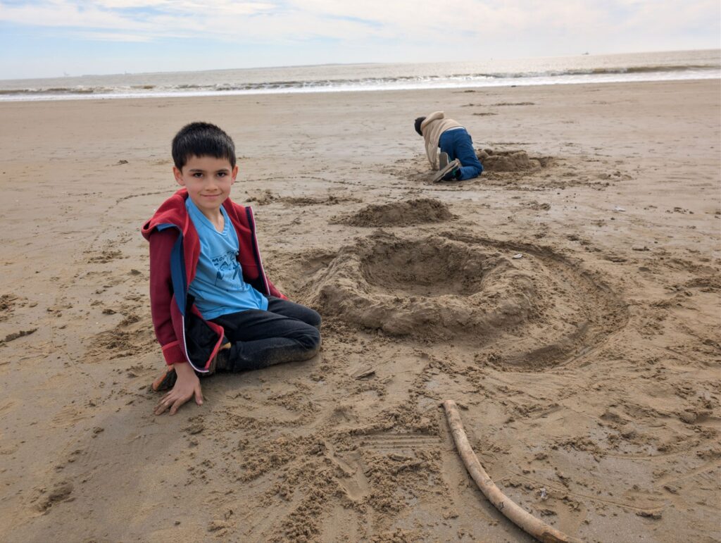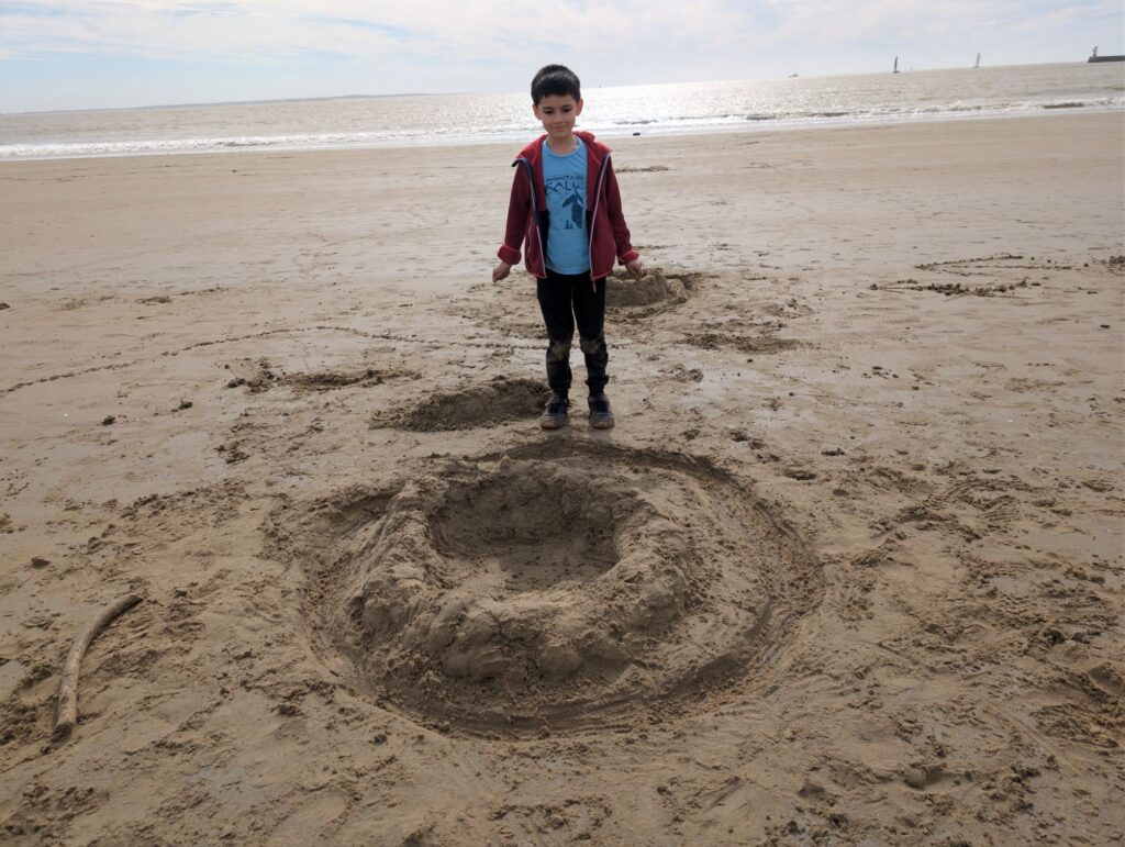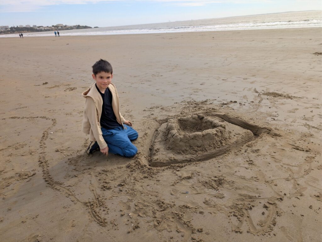 Nous sommes allés sur la plage et les enfants ont construit des châteaux de sable. Ils ont adoré, surtout quand Marc leur a prêté de grandes pelles. Cela faisait longtemps qu’on n’avait pas été à la plage et les enfants ne s’en lassaient pas !