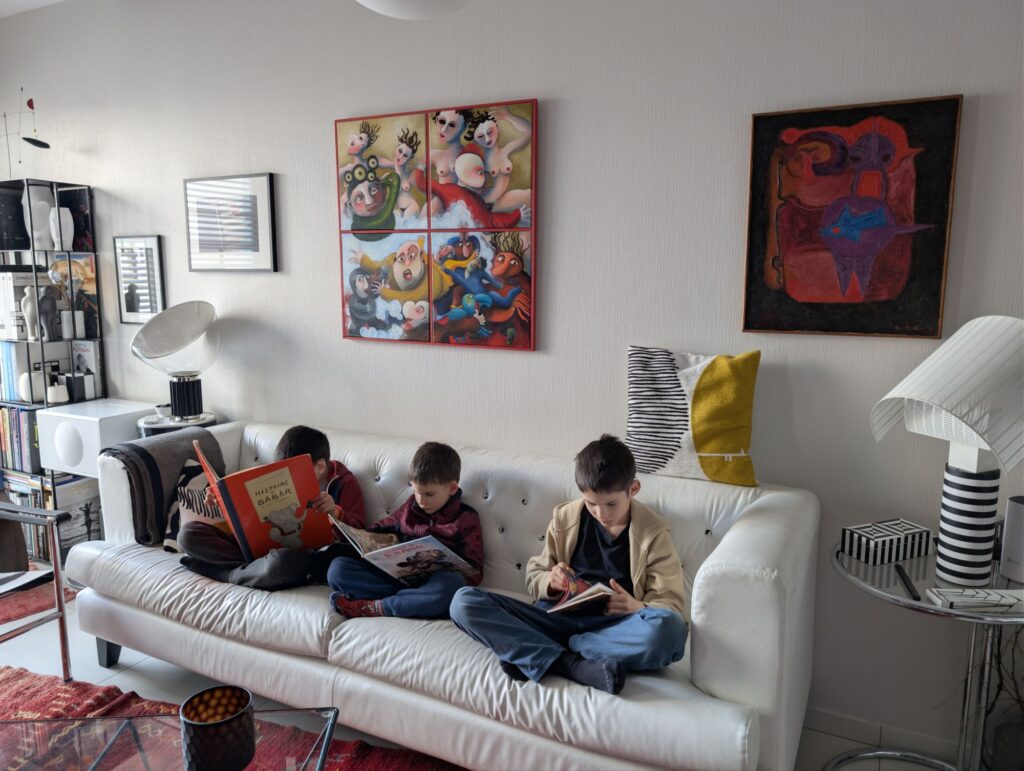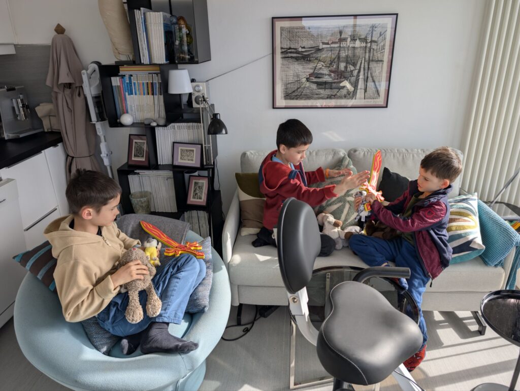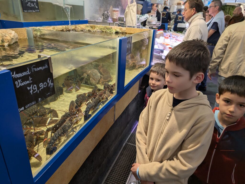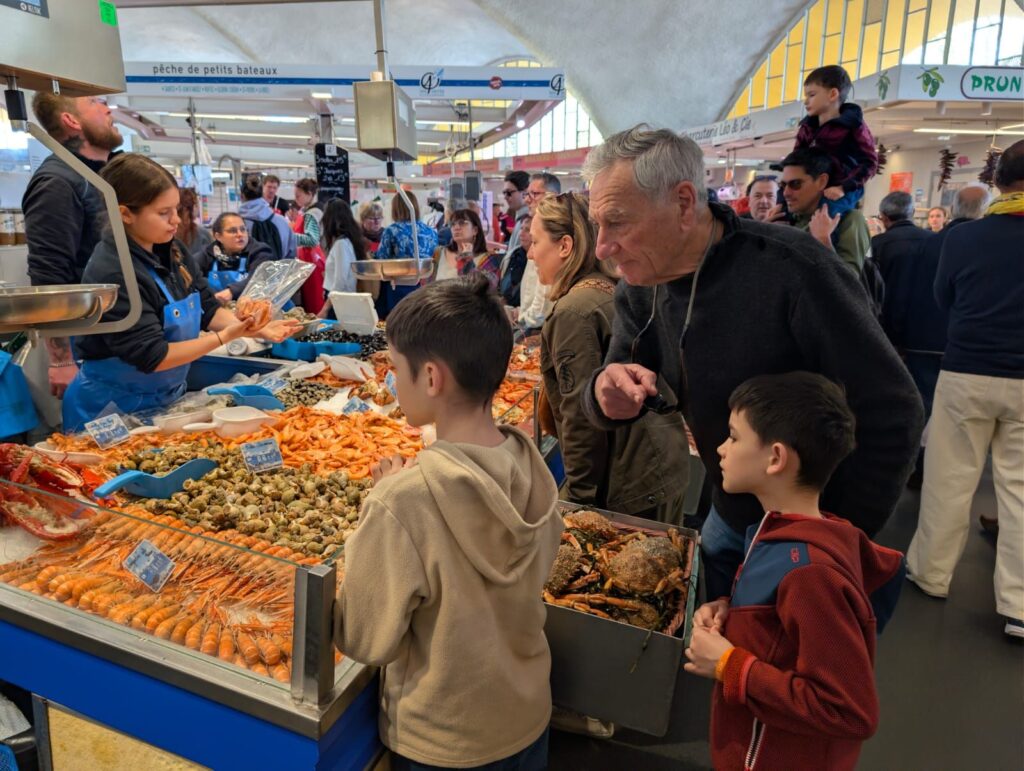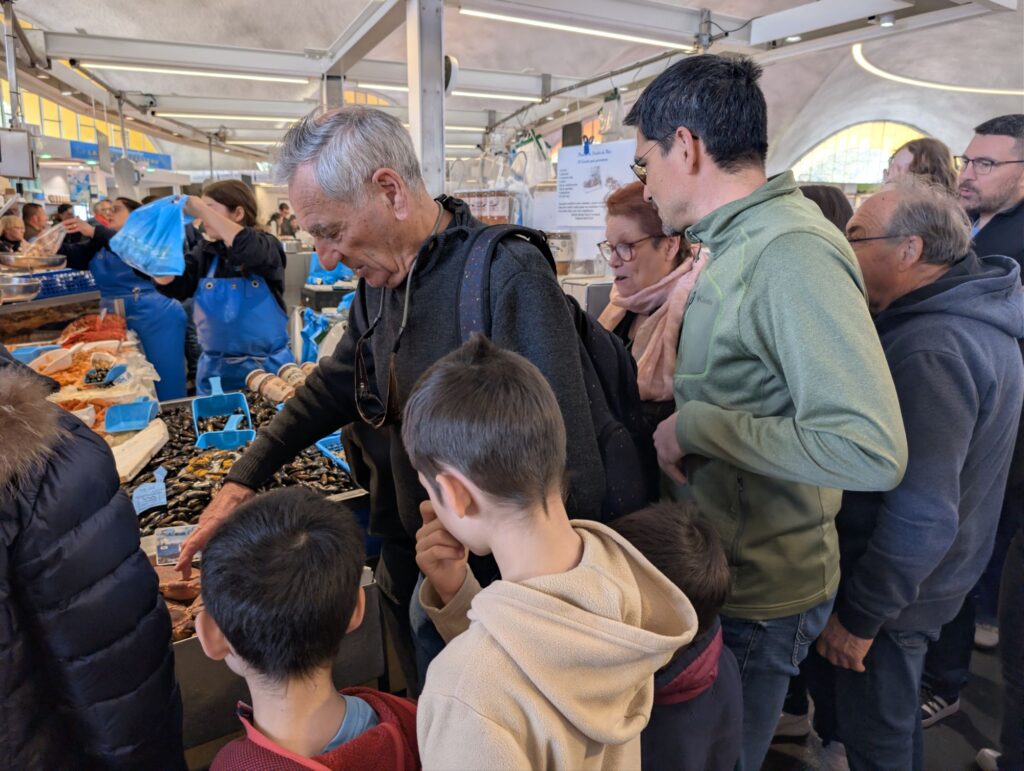 Marie-Anne nous a gâtés avec des gâteaux délicieux, et pour Pâques, les enfants ont fait une chasse aux œufs dans le jardin. Nous avons aussi fait un tour au marché pour acheter des fruits de mer — les enfants ont découvert les coques et ont adoré.