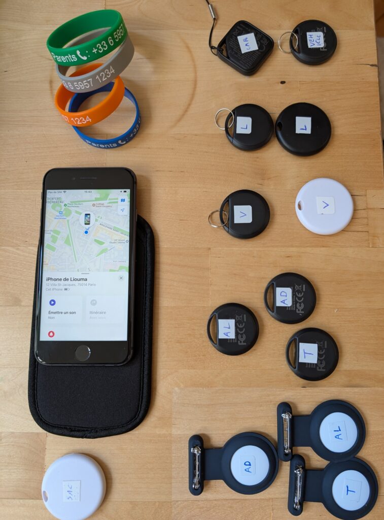 Et après avoir hésité, j’ai également pris des airtags pour chaque enfant : l’un sera épinglé dans leur sac à dos et l’autre clipé à la ceinture. J’en ai même pris pour les clés, la voiture et les sacs. C’est le genre de chose dont on préfère ne pas avoir besoin mais il peut arriver qu’on oublie où on s’est garé, qu’un enfant oublie son sac ou qu’on perde les clés.