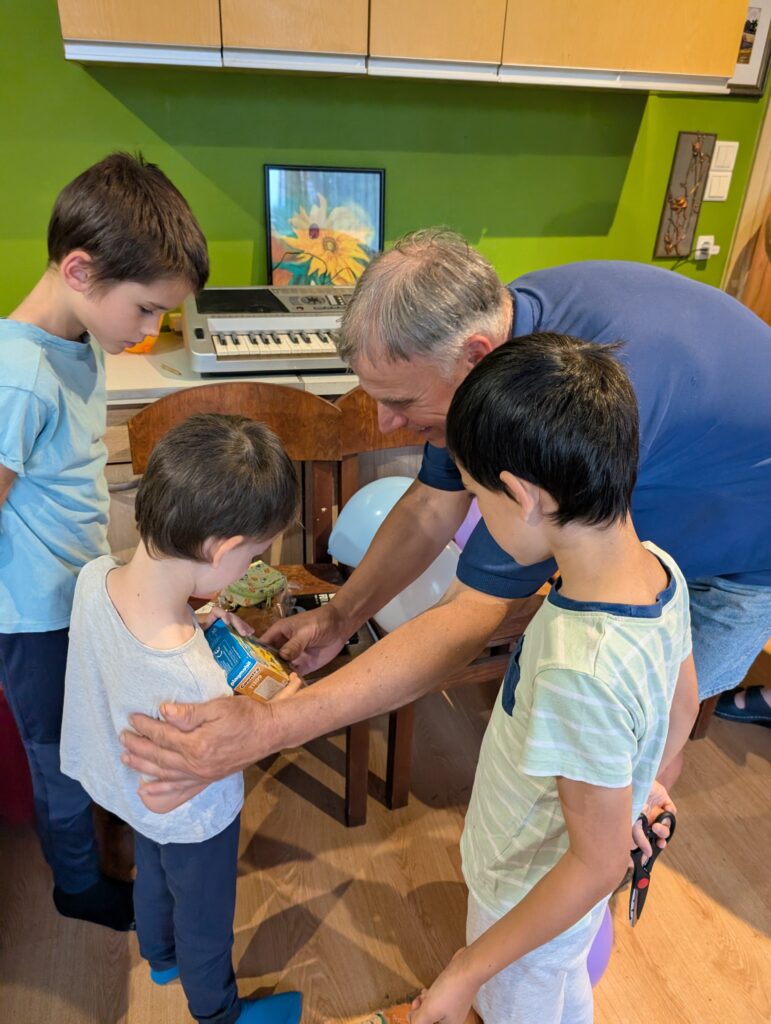 Papi était très gentil. Il nous donne beaucoup de cadeaux. Il fait beaucoup de câlins. Il nous donne beaucoup de jouets. On est très contents.