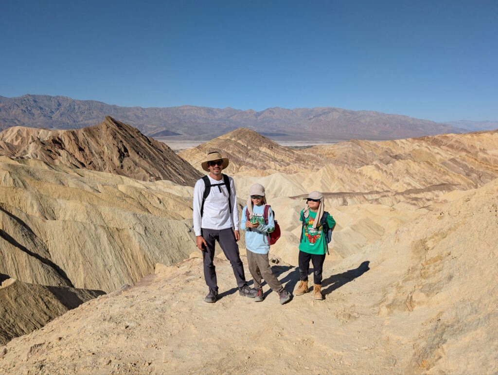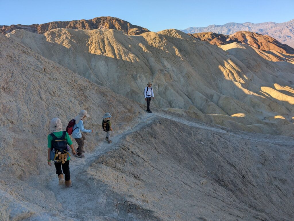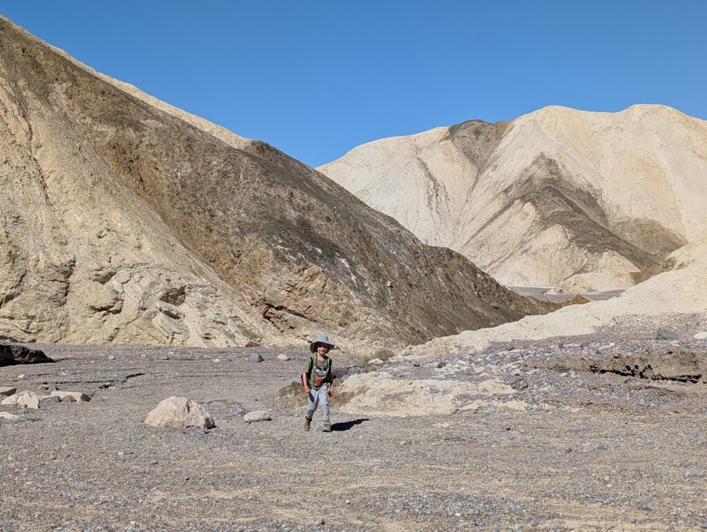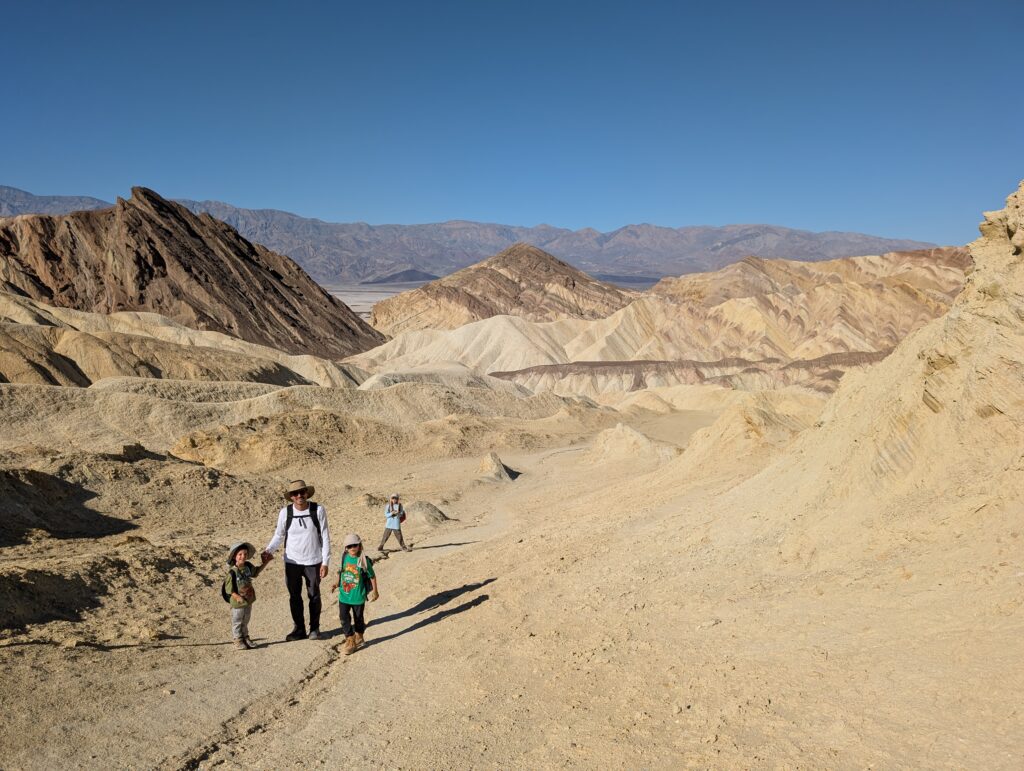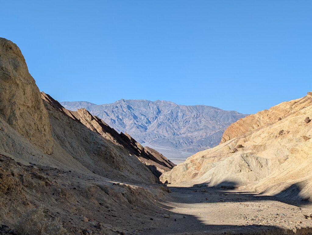 Entre les routes abîmées par l’inondation et celles interdites aux véhicules de plus de 25 pieds, nos possibilités sont assez limitées. Nous voulions visiter le « Golden canyon » mais la route y menant est inaccessible. Nous décidons donc de le rejoindre à pieds à partir du « Zabriskie point ».
