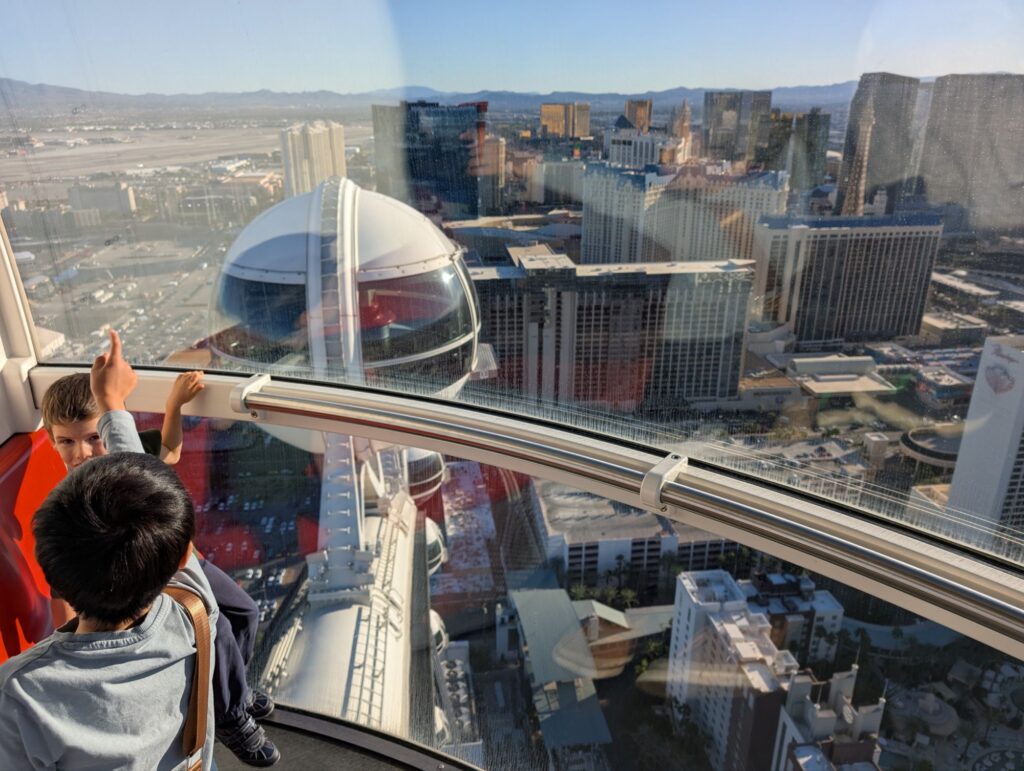 Nous continuons nos visites à Las Vegas, la Grande roue nous offre une vue magnifique sur tout Las Vegas. C’est une bonne surprise avec ses cabines gigantesques, quasiment vide au moment où nous l’avons fait, et qui avancent un rythme très lent. Un tour dure quasiment une demi-heure.