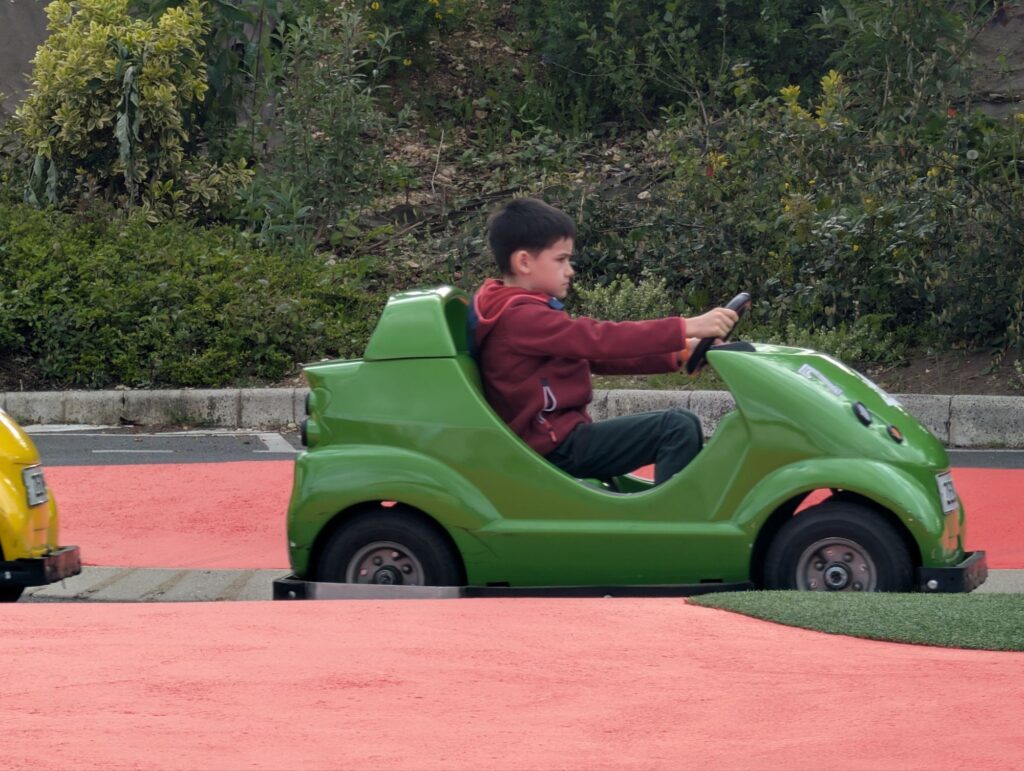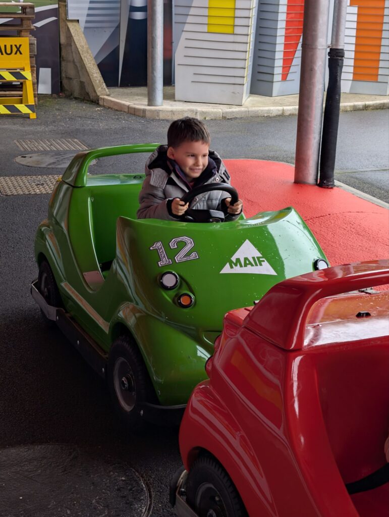 Et surtout dans un parcours organisé autour de la sécurité routière : cours de code de la route, panneaux, conduite d’une petite voiture électrique sur un parcours balisé. Depuis, à chaque trajet en voiture, il nous signale chaque panneau avec le plus grand sérieux.
