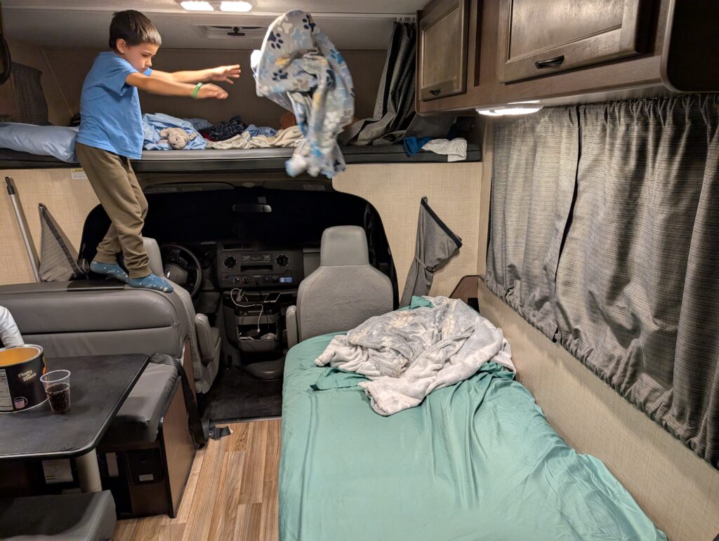 Comme souvent dans ce voyage, je n’avais pas réservé de campground pour nous laisser un maximum de liberté et d’improvisation. Malheureusement, les seuls campements sauvages autorisés sont tout en haut du canyon et je n’ai pas très envie de remonter pour la nuit.