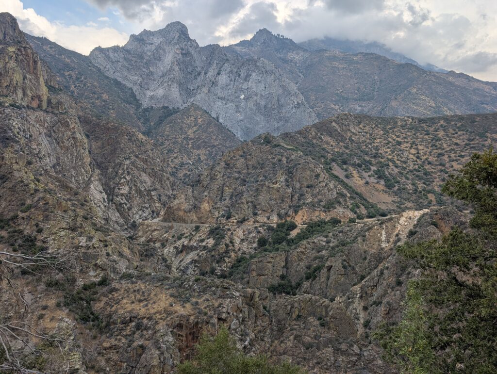 Ensuite, nous avons pris une longue route scenique qui descendait tout au fond de Kings canyon.