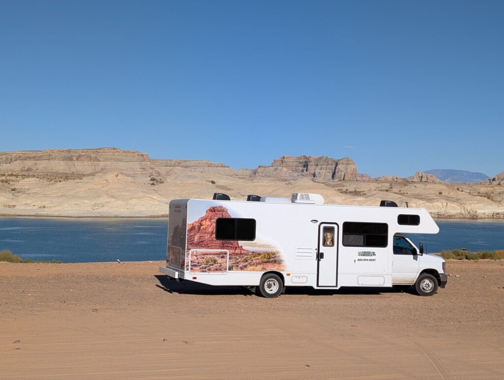 Puis finalement nous nous arrêtons au bord du lac Powell pour y passer la nuit.