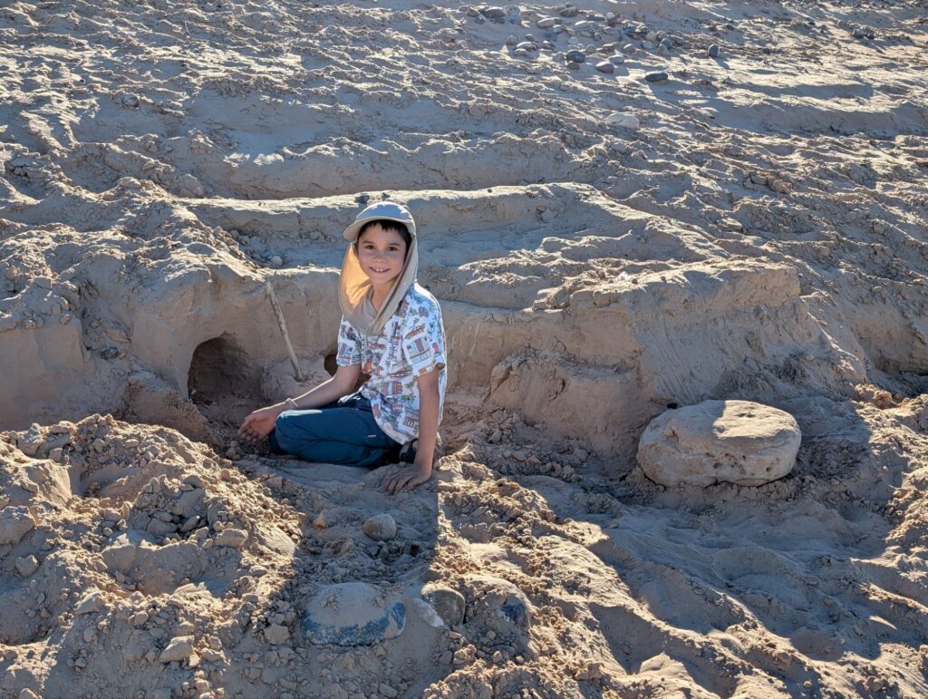 Les enfants jouent pendant des heures à lancer des cailloux dans l’eau. Puis c’est le grand silence ce qui est plutôt inhabituel chez nous. Ils se mettent tous à faire des châteaux de sable, chacun concentré sur sa tâche.