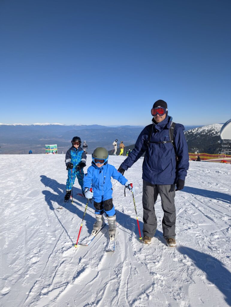 Le lendemain, toute la famille monte à 1 600 mètres. Mais gérer les trois enfants en même temps s’avère compliqué, et à 5 ans Thomas a besoin d’une approche un peu différente. Finalement, je continue surtout avec Alexandre, comme je l’ai fait avec Adrien la veille. Alex est plus impatient et plus jeune qu’Adrien. Nous montons quand même tous les 5 au sommet, avant qu’il ne maitrise vraiment les techniques de base.