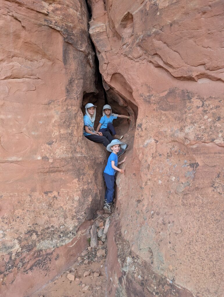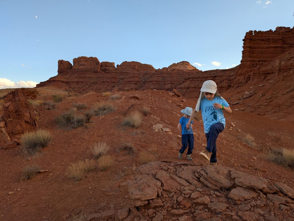 La veille nous avions renoncé à descendre dans le Grand Canyon avec les enfants. Non qu’ils n’en soient pas capables, bien au contraire, mais ils sont tellement excités et escaladent tellement chaque rocher que c’est très fatiguant pour les parents qui ne peuvent relâcher leur attention une seconde.