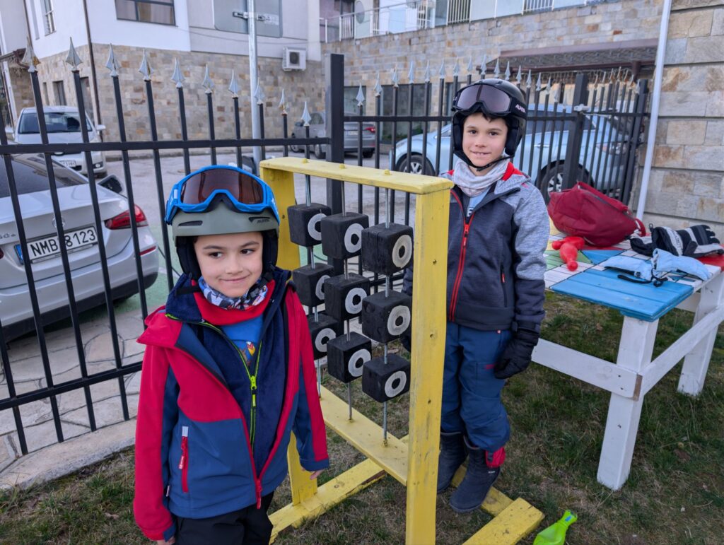 De retour à l’hôtel, il y a également une petite aire de jeux avec un jeu de morpion. Les enfants s’y amusent inlassablement au retour du ski !!