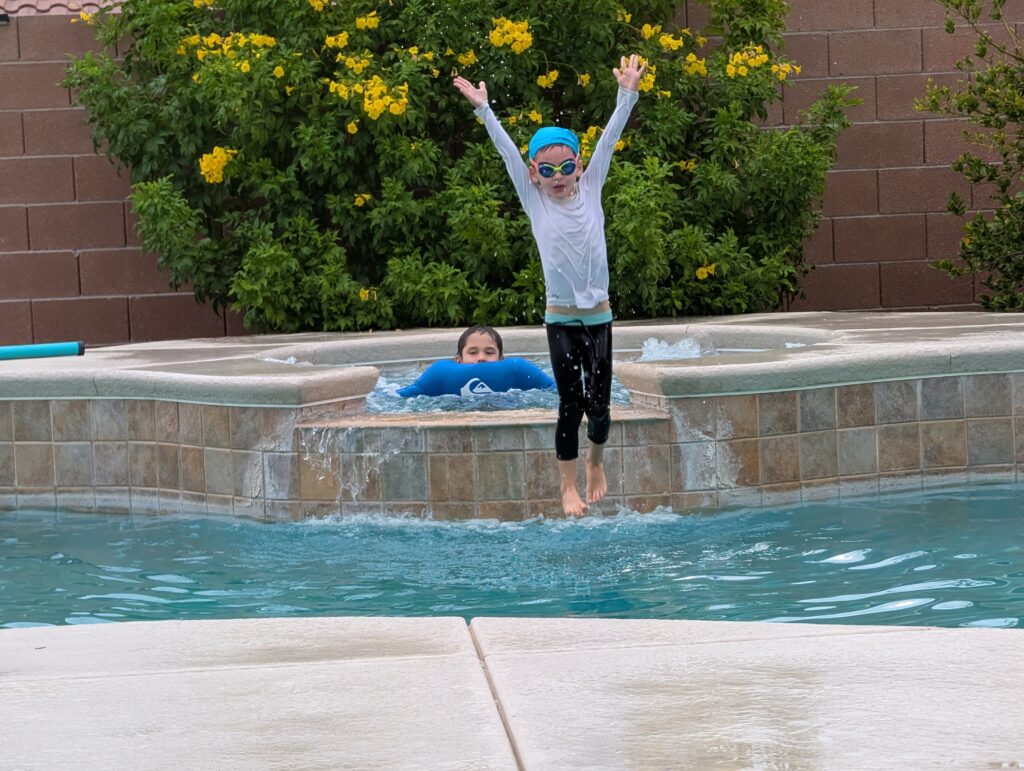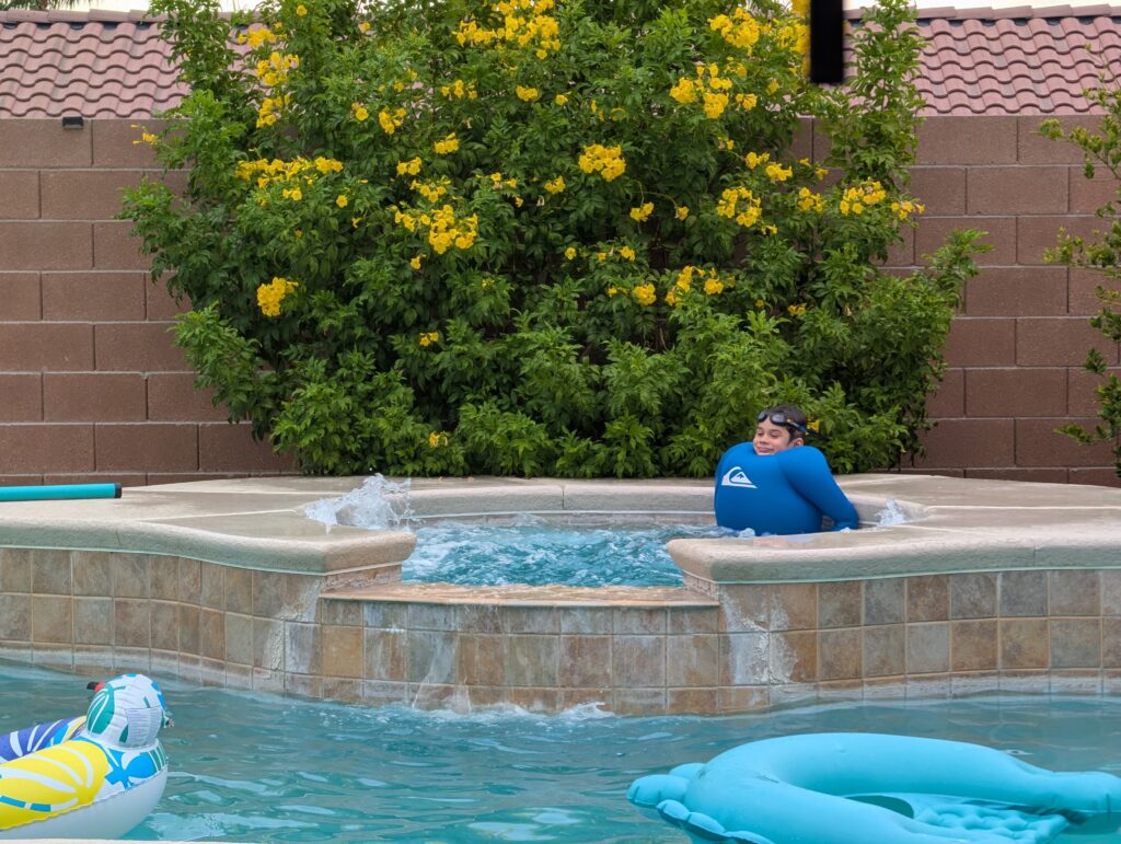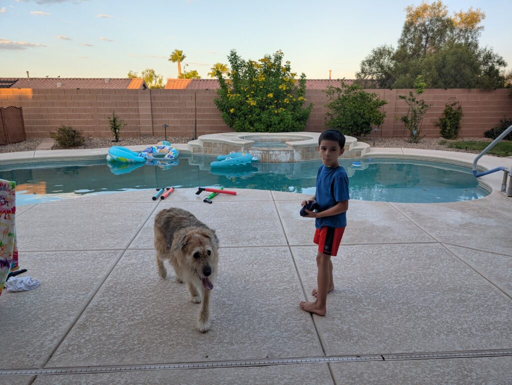 Les enfants passent du bon temps dans la piscine à jouer avec Ginger, la chienne de nos amis. Gary et Pacita sont comme des grands parents pleins d’attentions pour nos enfants qui semblent avoir trouvé une mine de chocolat dans la maison, Gary leur prépare de savoureux petits déjeuner, et il y a toujours plein de cupcakes pour leur gouter 🙂