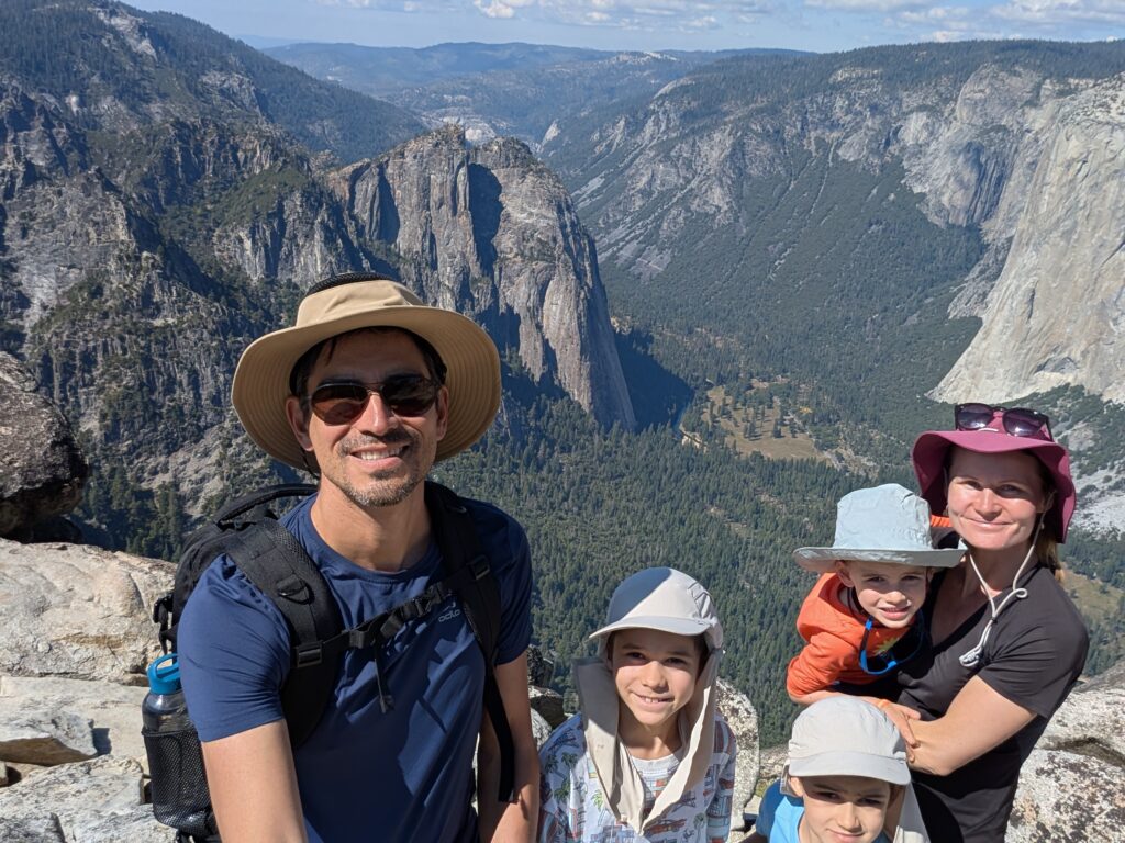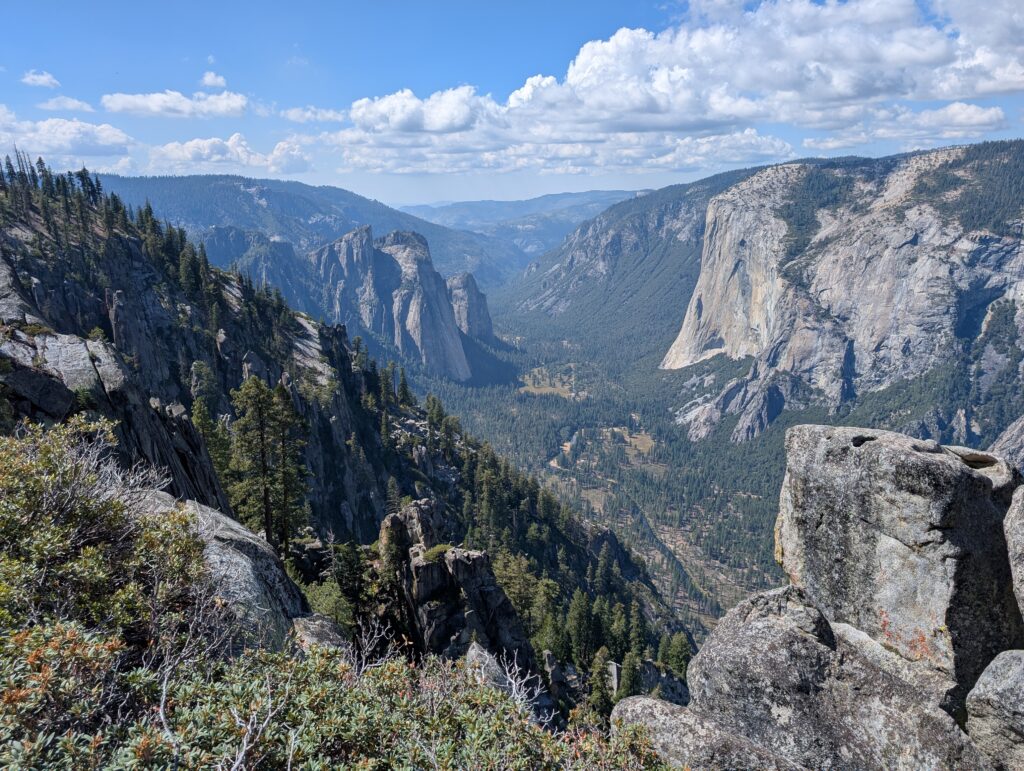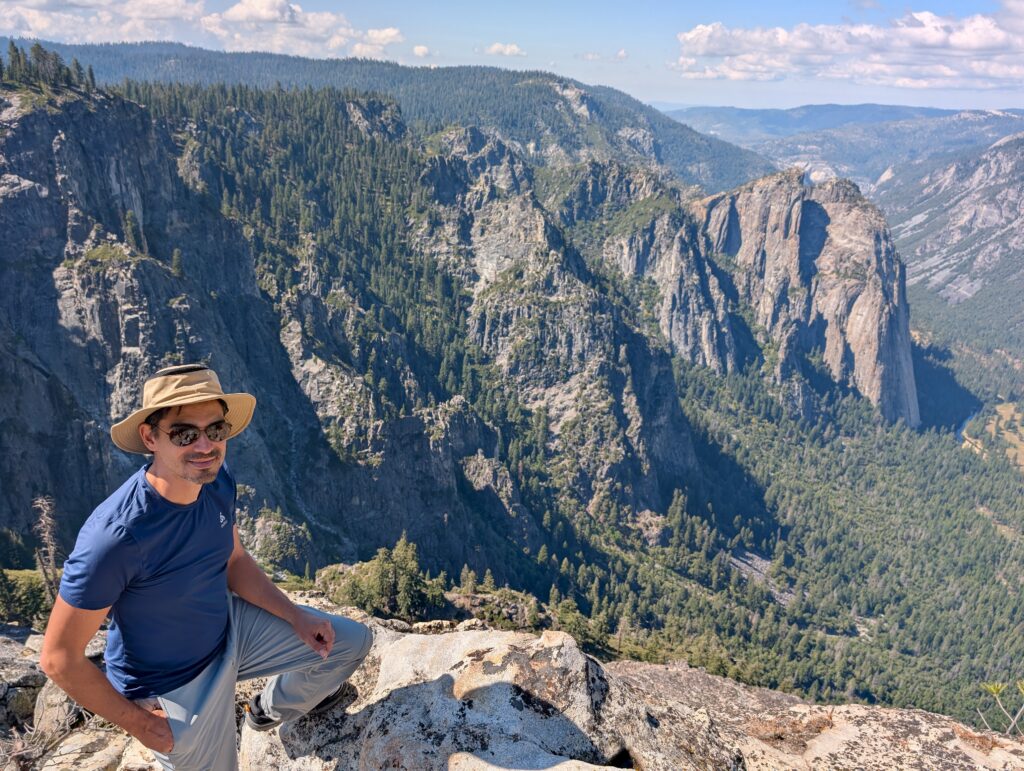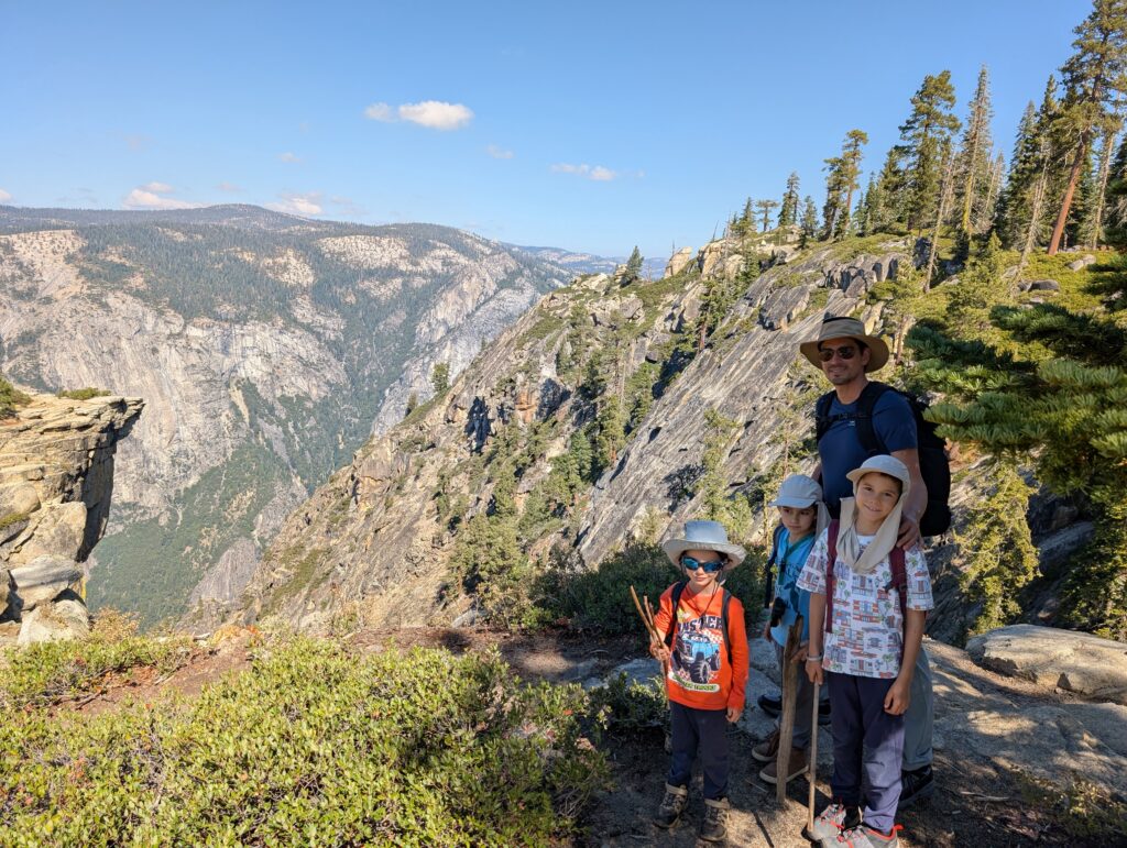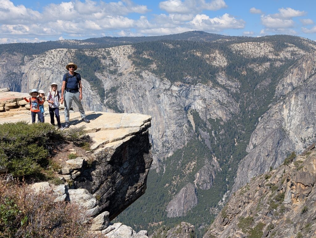 Nous avions prévu une boucle assez simple passant par Taft Point A et Sentinel Dome… mais comme toujours, nous ajoutons des détours : Roosevelt point et finalement Glacier point ce qui donne une promenade de 7h !