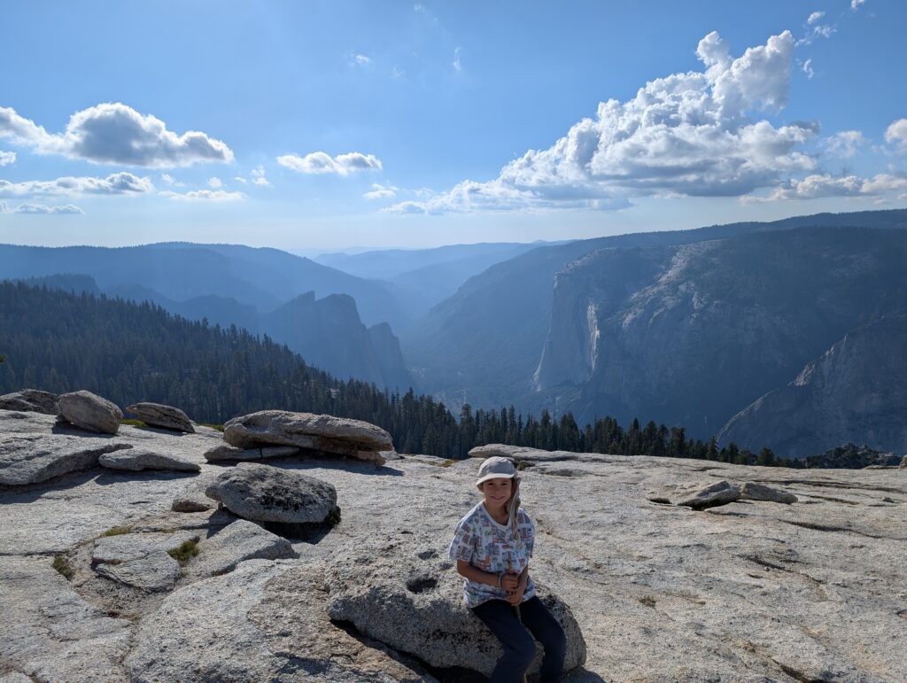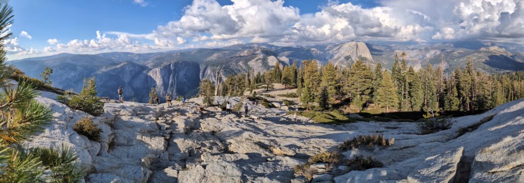 Nous arrivons à Glacier point d’où il n’y a pas de vue sur des glaciers. Par contre il y a un parking, un commerce et énormément de monde en ressortant en mangeant une glace. Aurais-je mal compris l’intérêt du parc national ?